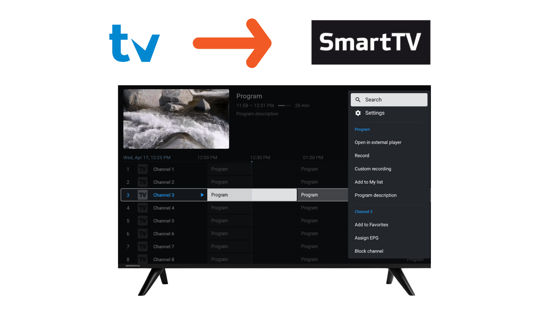 View program guides, organize channels, and access content effortlessly.